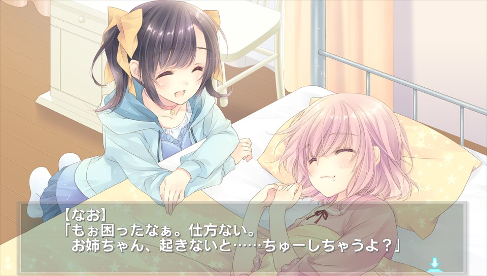 Bad End:同样非常美味,于天台选择“原谅”进入。あすか选择了原谅,なお却不能原谅自己,唯有让姐姐持续地虐待自己的身体才能获得一时的解脱感。这个结局不仅涉及SM,还出现了“长达三小时”的窒息Play等描述。