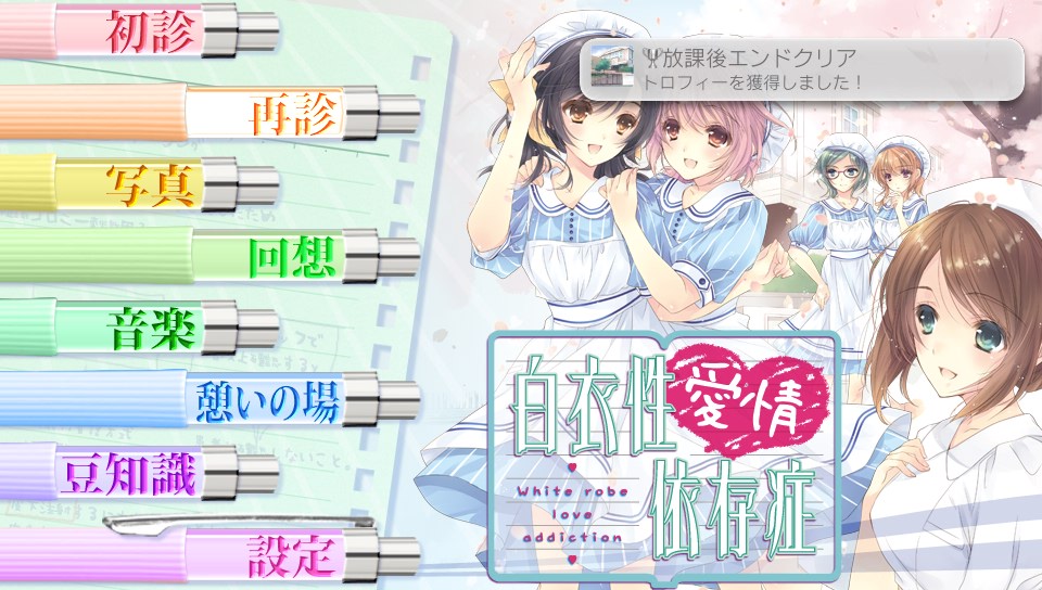 虽说工画堂的AVG多多少少都会牵扯到超现实元素,但我真没想到这个披着护士学校背景外皮的游戏会扯到那么远……。用别人的话来说就是:“这游戏竟然能拿到CERO C(即仅限15岁以上玩家)的评价等级太神奇了!”。我也很想问,这剧本竟然是怎样通过审核的,按理来说某个结局已经处于“禁止描写”的范围,说是违反人伦也不为过。