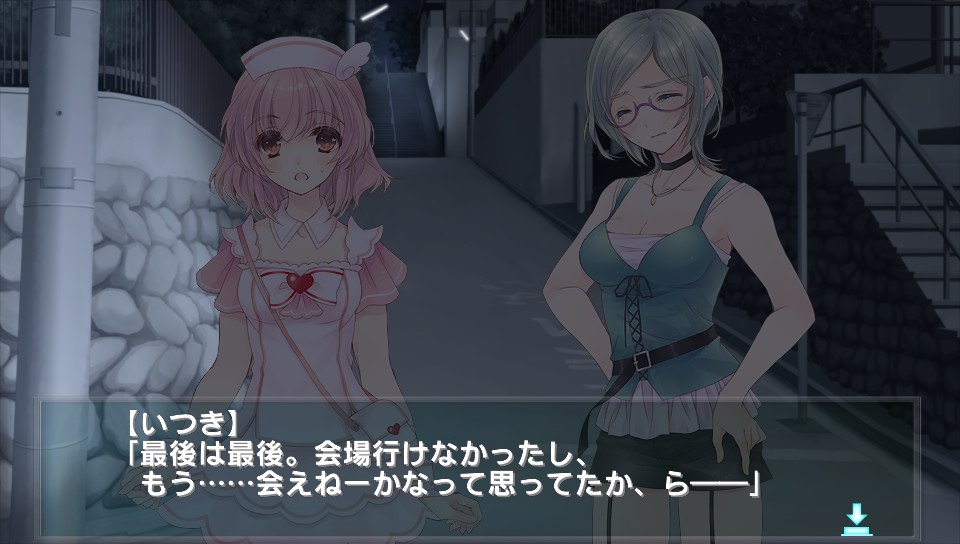 我原以为ぷりま只是用来增添COSPLAY元素而设定的角色,所以在看到这段同人游戏的描写和いつき的告白时,我有点意外,也的确有被触动。感动之处正来自于角色的反差,在いつき酷酷的外表下,内心仍然保留着当年的软弱,只是她一直没有表现出来。现在喜欢的人终于记起了往事,她也再不用隐瞒,将多年来埋藏在心底的话对あすか讲出,感情流露自然、真切。若要选出全作最感动的一幕,我会挑这段。