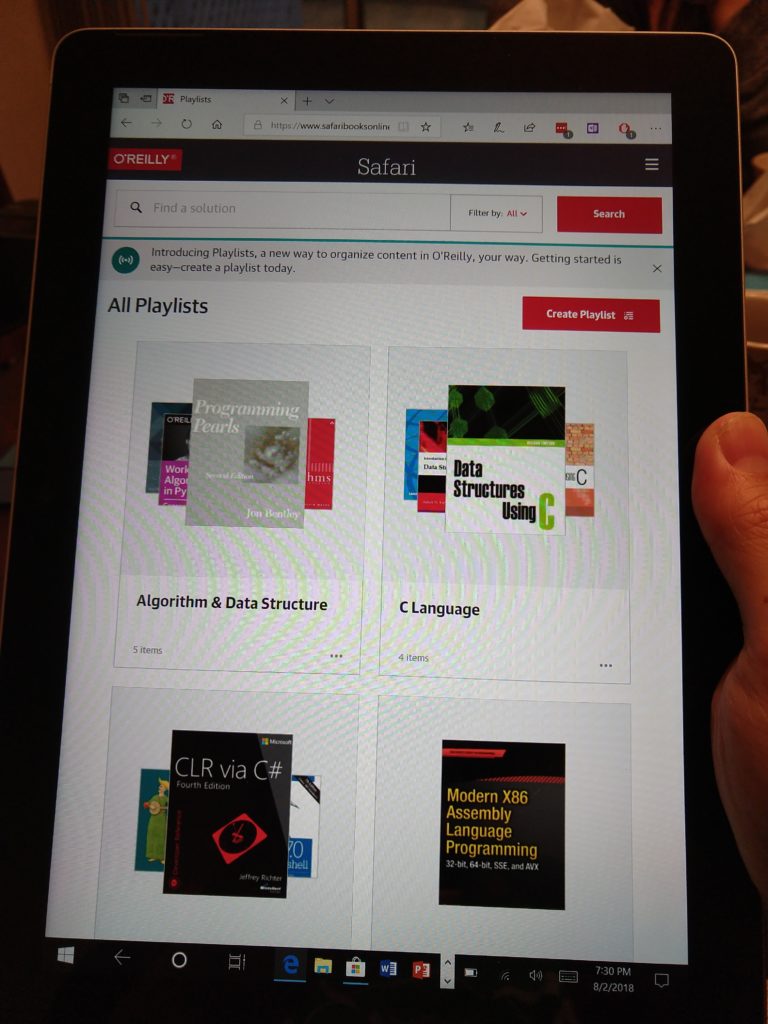 软件方面,Windows 10 S Mode的可用性出乎意料。Windows Hello的人脸解锁,暂时的感觉是快捷方便,但识别成功率有待提高。用Edge看Safari Book Online也十分舒服,微软似乎有进行专门优化,responsive页面的兼容性比Yoga 920(Windows 10 Home)还好。尽管不能装Store以外的app,对于一台主打移动的设备来说,有日常应用就已经足够。有些朋友可能不太常用远程桌面连接(Remote Desktop Connection),我认为是Windows上的神级实用组件之一。对电脑性能有要求的或商店没有的应用,只要保证稳定的网络,就能通过远程桌面来满足。这两天我用Surface Go在公司开会期间连回工作站用Visual Studio敲代码和刷新浏览器监控job,在家躺床上玩Galgame,都没有觉得有明显的卡顿或延迟。Windows 10 S还有自动分屏功能,我非常喜欢:在某些场景下,系统会自动分割屏幕,将新打开的应用自动放到右半边。如在浏览邮件时,点击邮件中的链接,Edge会在右边启动,用户可以同时继续看邮件及浏览邮件相关的网页。总体来说,多任务能力完全满足日常操作,我在后台下载东西、开着浏览器和一个Word文档、一个Excel文档,也没觉得卡顿。